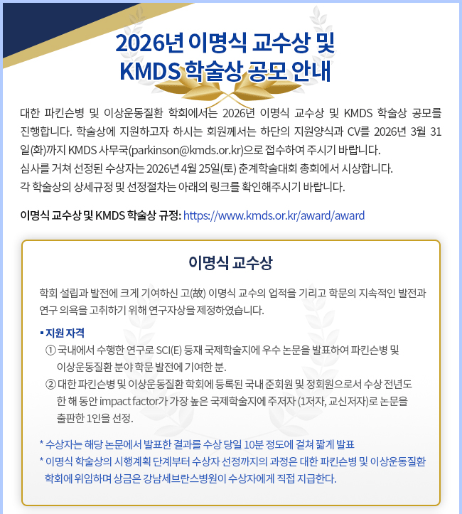 2026 이명식 교수상 및 KMDS 학술상 공모 안내